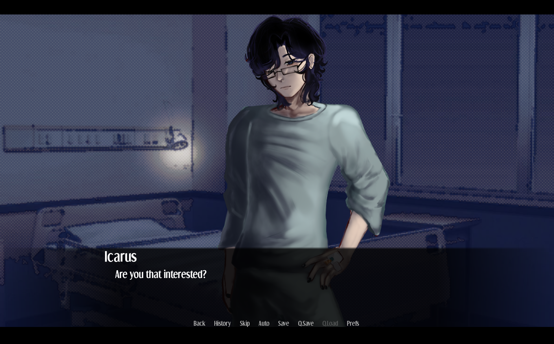 this game is really promising, especially with the premise. iām excited to see if you take it into the body horror aspect! the shadow with the neck snapping and the sound effects were sooo unsettling. i love how the music complements the scene and enhances the tension. itās so soothing when something is obviously wrong and when it suddenly stops, it makes your stomach fall through the floor. the composition of the backgrounds are so clean and the cgs of the three love interests are beautiful. i especially enjoy the soft lighting; it makes everything feel surreal. i also like the sense of mystery you have without overexplaining. easily one of the most intriguing openings iāve seen in a while.